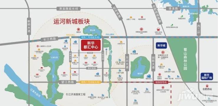 新华都汇中心项目具于豌豆洼路与长江路交口,紧邻主干道长江西路,直通感高新、庐阳主城区,未来还有二号线西延线与六号线二期,交通快捷,出行方法多样。商业上,项目邻近有规划的邻里中心,满意周边居民各类购物需求,教育规划适当完全,有24班小学,30班中学,15班幼儿园,邻近还有蜀山行知校园、八中新校区,不需要过多的忧虑孩子未来入学问题。