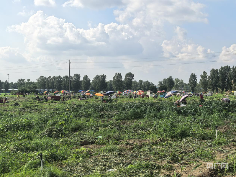 走进太和镇闫店岗村,千亩毛豆田犹如绿色的海洋,在阳光照射下泛着油亮的光泽。闫店岗村乡民张明爱和家人扛着麻袋、拎着塑料桶,一头扎进自家三亩多的毛豆地里。只见她双手上下翻飞,“咔嚓咔嚓”的采摘声此伏彼起,不一会儿,桶里就装满了圆鼓鼓的豆荚。“现在正是青豆上市旺季,能卖3块多一公斤嘞!”张明爱擦了把汗,脸上笑开了花,“农闲时我还去帮别家采摘,每公斤能挣8毛,算下来又多了笔收入!”